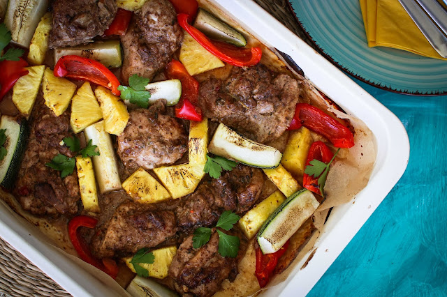 Ja jos mikä, niin uunissa valmistuva Jerk-kana tuo ilon ja värin ruokapöytään. Pannulta löytyy ananasta , paprikaa ja kesäkurpitsaa. Helpon herkullista ja erilaista, jos se nyt olisi se avainkokemus mitä tässä haen.