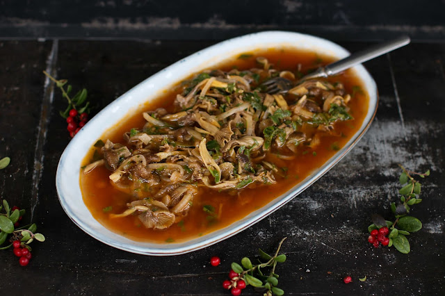 Täytyy nyt oikein rietastella näiden tattien kanssa ja lisätä vaan pökköä pesään. Tattijulienne on nimittäin herkku, jota en ollut vielä koskaan maistanut, mutta jonka tiesin kyllä herkkua olevan. Mitä se nyt muuta voisi olla, tuoreet tatit, sipuli, smetana, juusto…